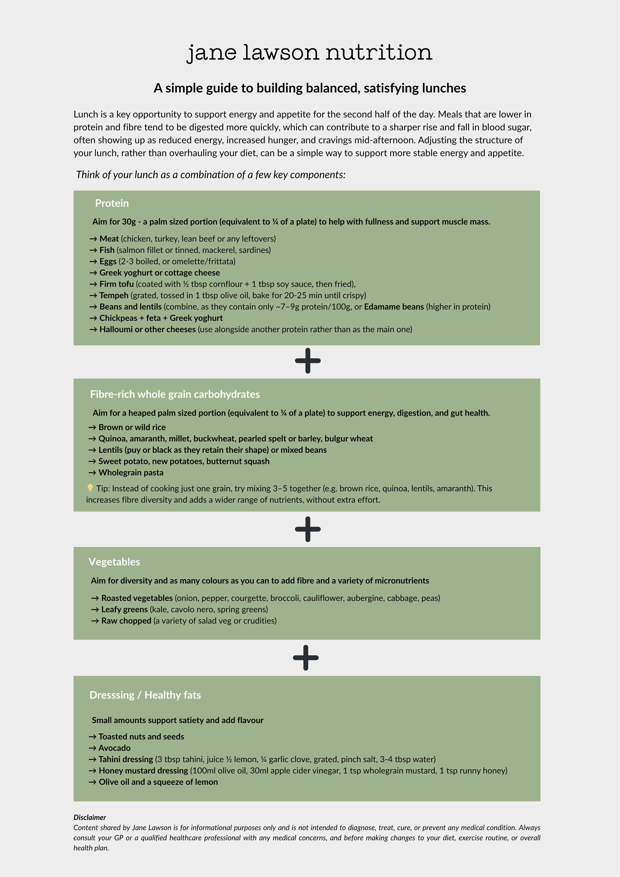 A Simple Guide to Building Balanced, Satisfying Lunches Apr 12 Written By Jane Lawson Jane Lawson https://www.janelawsonnutrition.com