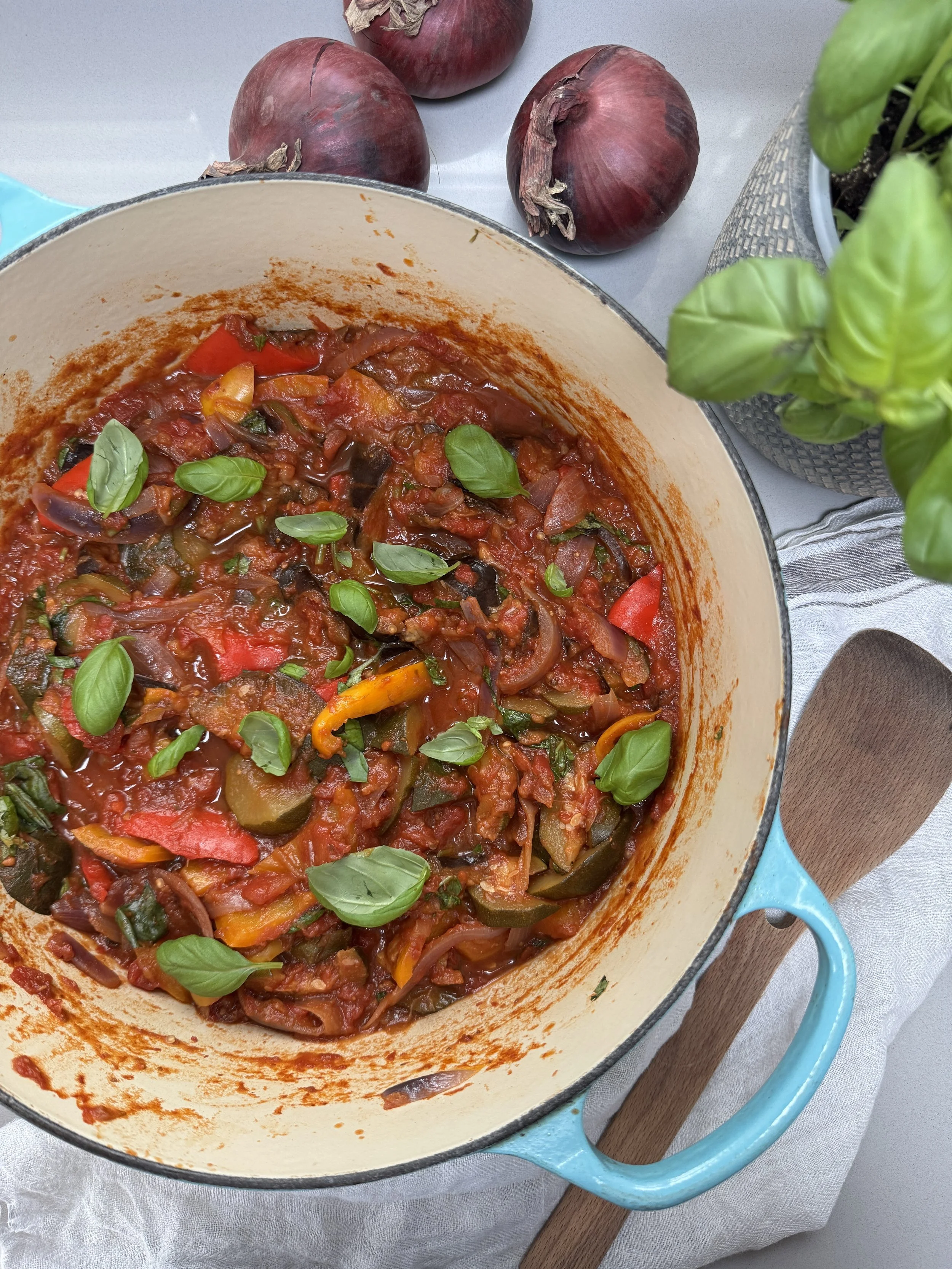 If you’re trying to eat more vegetables without overcomplicating things, this is a good place to start. Ratatouille is one of those simple, flexible dishes that gives you a lot back for very little effort — just a bit of chopping, one pan, and time to let everything soften and come together.